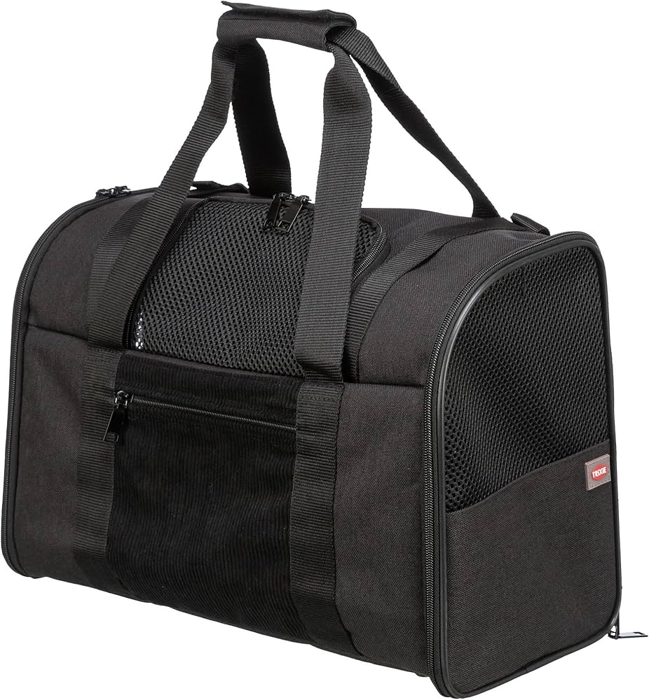 Trixie practical rucksack kip made of durable polyester, is ideal for the transport of cats and small dogs. Net inserts ensure a good air circulation. The rucksack, which is fitted with adjustable shoulder straps and a separate front pocket, can be opened at the side as well at the front. T-Bag rucksack is suitable for pets weighing up to 8 kg. Simply wipe clean.